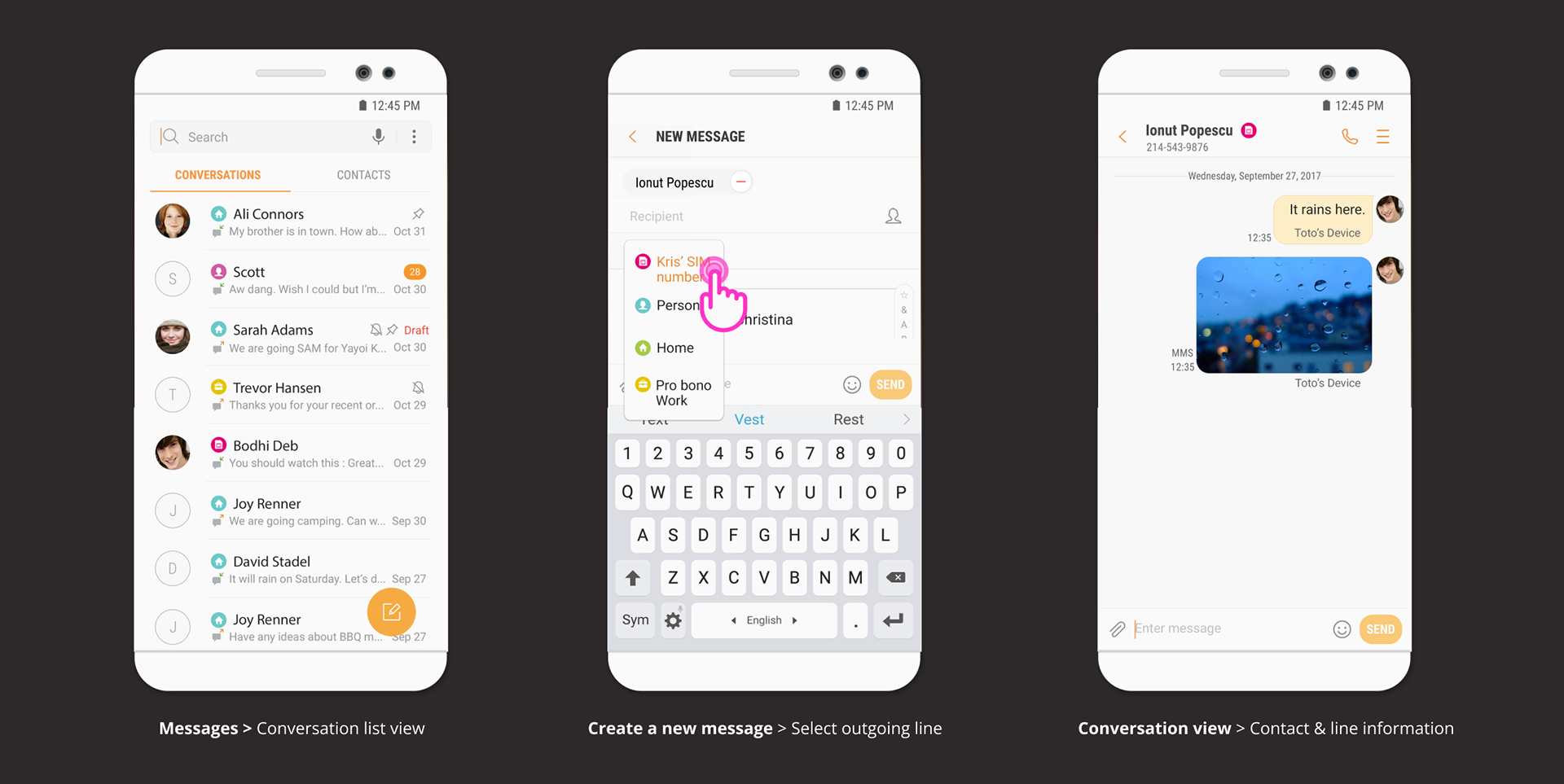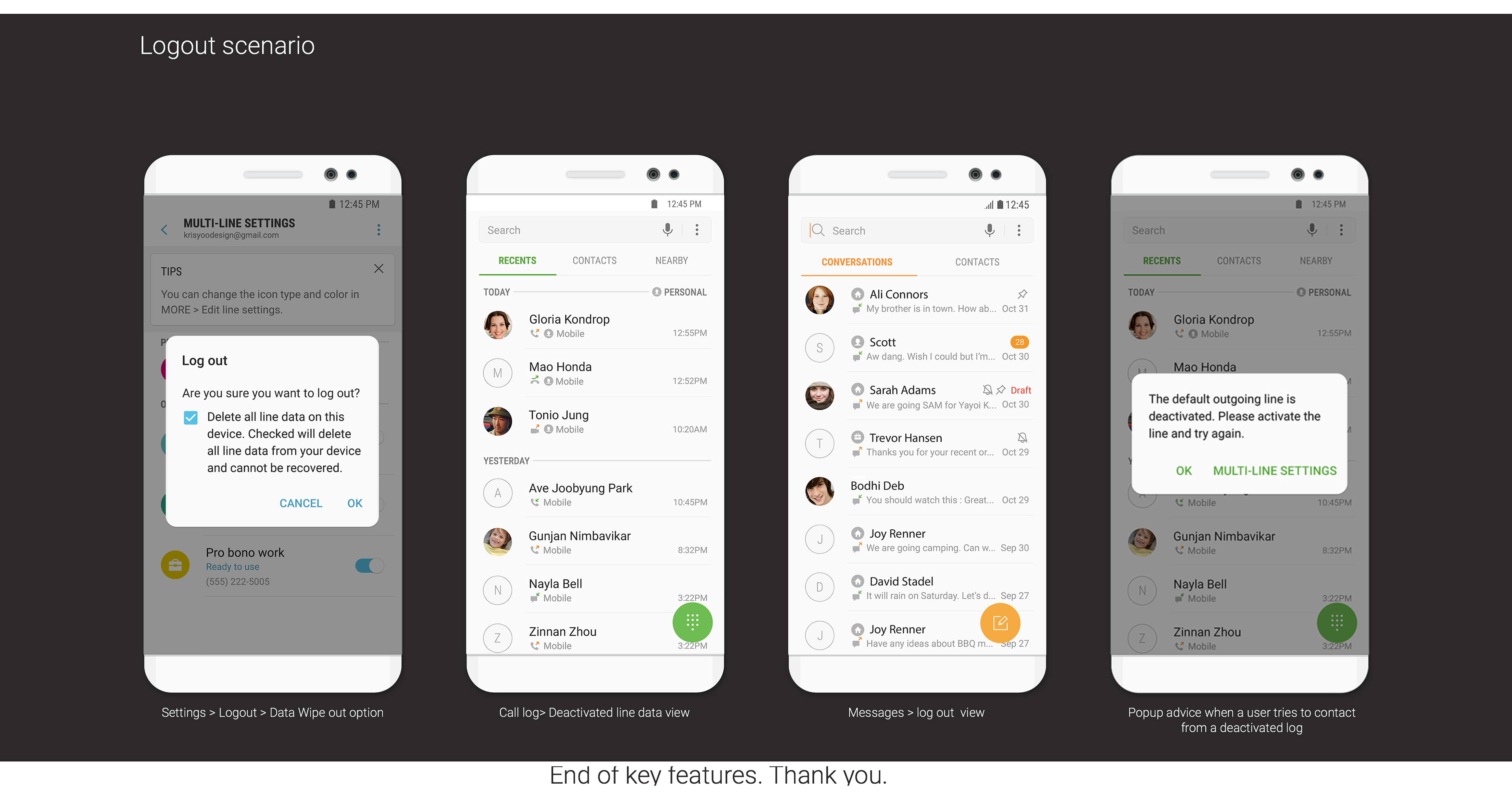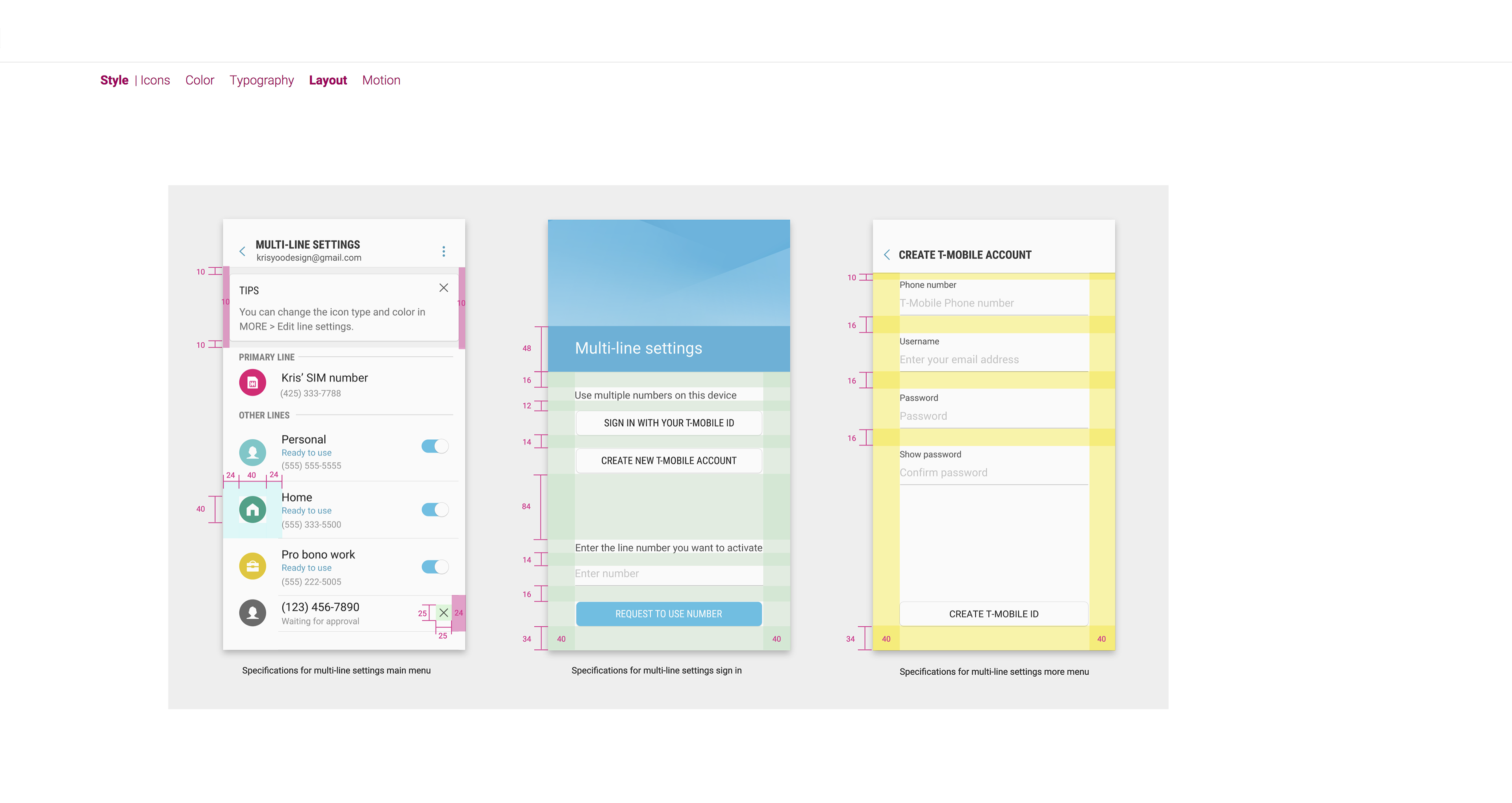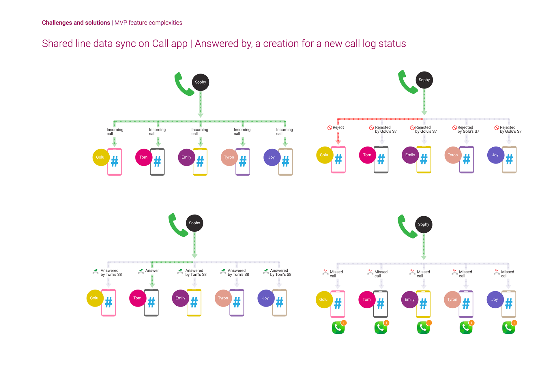 Define design deliverables and collaboration: A comprehensive information architecture and a design language encompassing layout, color palettes, iconography, and typography were established. This design language ensured a cohesive user experience across all multi-line functionalities. While I defined these design elements, the detailed UI design work was delegated to the native apps UX design team at Samsung HQ.