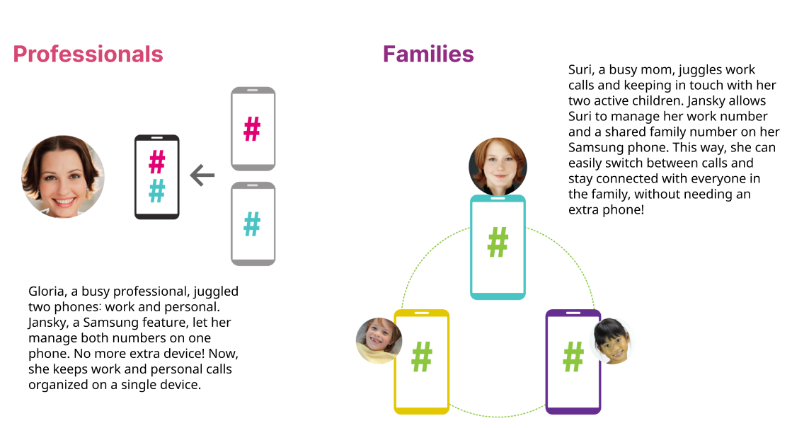 About the project: Jansky, a collaborative project between a major network provider (like T-Mobile) and Samsung, aimed to revolutionize multi-line phone management. Users with Samsung flagship devices could leverage the project's innovation to manage and use multiple phone numbers seamlessly.