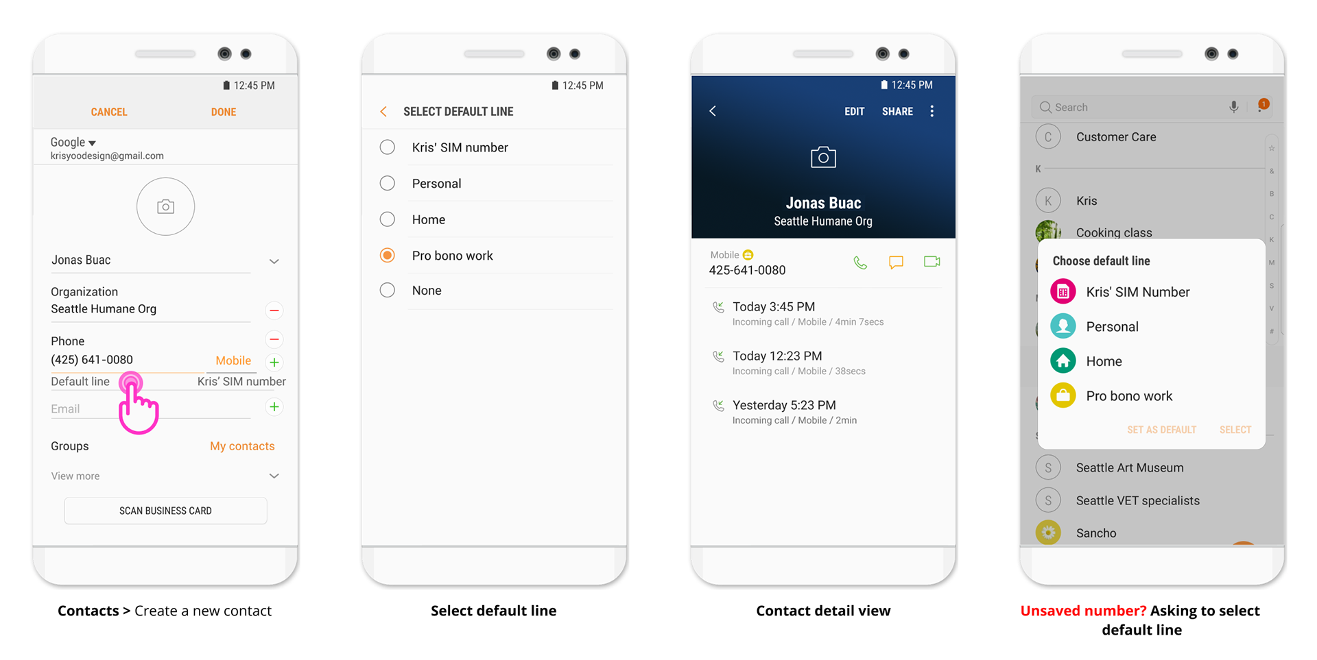 Prioritizing Consistency: We prioritized consistency across the apps involved in Jansky (Call, Messages, Contacts). This meant avoiding the introduction of new interaction patterns that users would have to learn. By adhering to familiar design patterns already established on Samsung devices, we ensured a smooth user experience.
